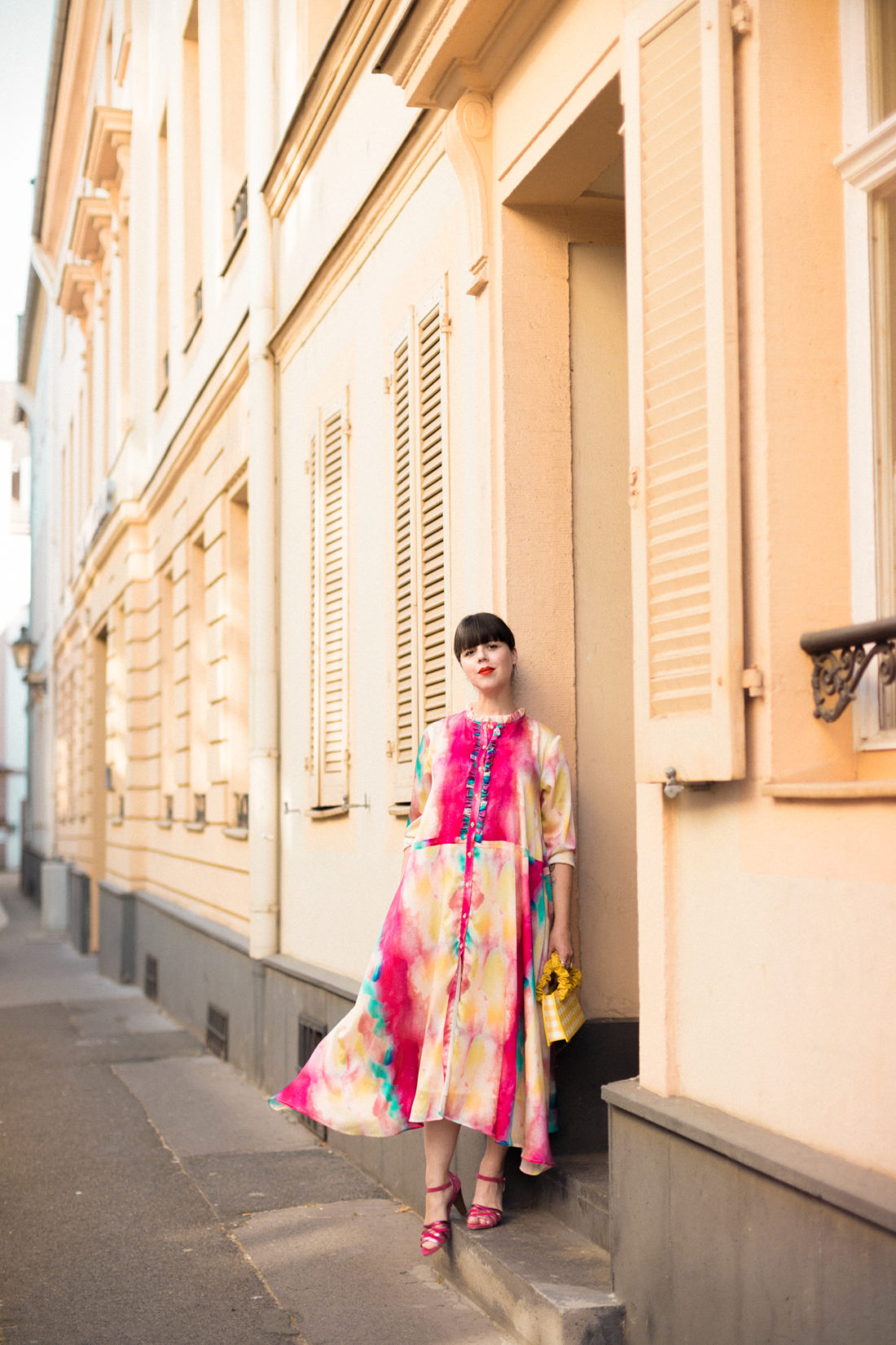 Robe Java imprimé Rainbow HEIMSTONE – Chaussures La Cannes Charmante EPONYME – Sac Camille Vichy citron MIYETTE