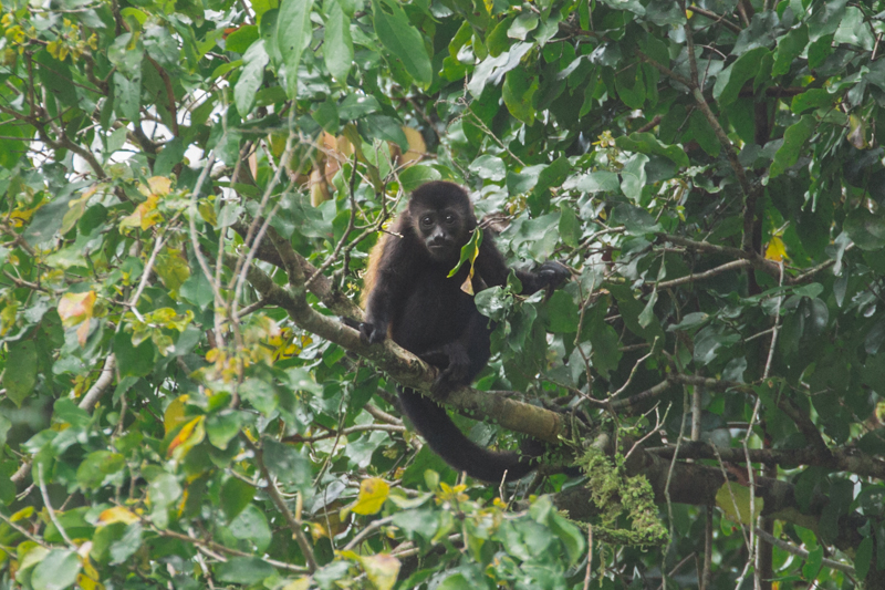 Nous avons passé trois jours là-bas, à une dizaine de minutes en bateau du village de Tortuguero, dans notre joli bungalow de l’Hotel Manatus, un petit paradis perdu entre la rivière et la jungle, où nous croisions dans le jardin des iguanes, des grenouilles, des fourmis champignonnières (celles qui découpent et déplacent les feuilles en file indienne, créant de véritables autoroutes à double sens entre l’arbre cible et leur nid). Il suffisait de lever la tête pour apercevoir un paresseux se déplacer avec une lenteur relaxante, ou un singe hurleur se balancer à l’aide de sa queue préhensile.