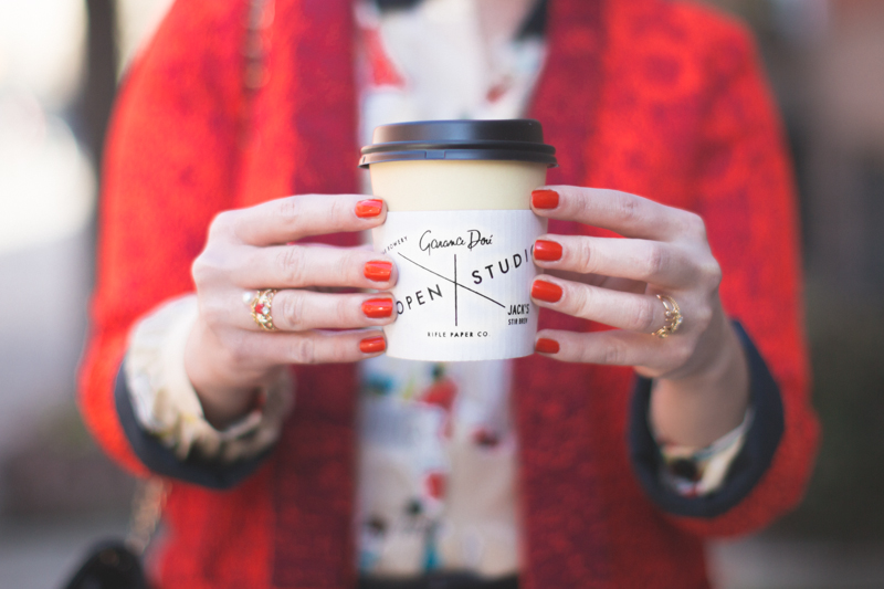I came back a few hours later (still under a heavy rain – “all the girls are crazy”, it’s written on my blouse!) and I bought two prints of my favorite Garance Doré’s drawings and several Rifle Paper Co cards. I witnessed a very glamorous talk between Garance Doré and Lola Rykiel about good manners, Paris VS New York, dating… all this with a lot of humor. I even talked to the beautiful Lola – I was probably as red as the jacket I’m wearing above! There also was a TATTLY workshop to get temporary tattoos of the illustrations/patterns of the Garance Doré Paper collection. Biggest regret of the day : I was silly, even though I talked to the beautiful Garance, I didn’t ask her to sign my prints… Hashtag HUGE FAIL!