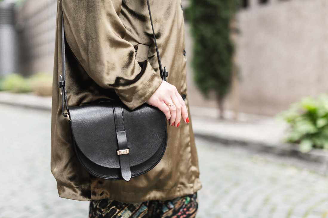 D’ailleurs, le look d’aujourd’hui me va, je crois, beaucoup mieux que le combo Mum Jeans – gilet court de la dernière fois ! Une parka longue et fluide, un pantalon en soie imprimé et un T-shirt “pour la bonne cause” : ça flatte plus, non ?