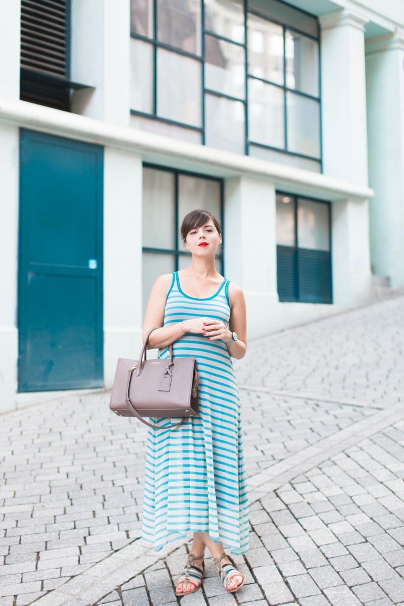 Robe marinière Jean Paul Gaultier – Spartiates PEPE JEANS – Sac Trapèze PAULE KA – Bracelet SHOUROUK