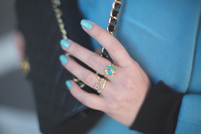 Très jolie collection de bijoux! Et tu la portes bien avec ce manteau, ce vernis et ces chaussures 🙂