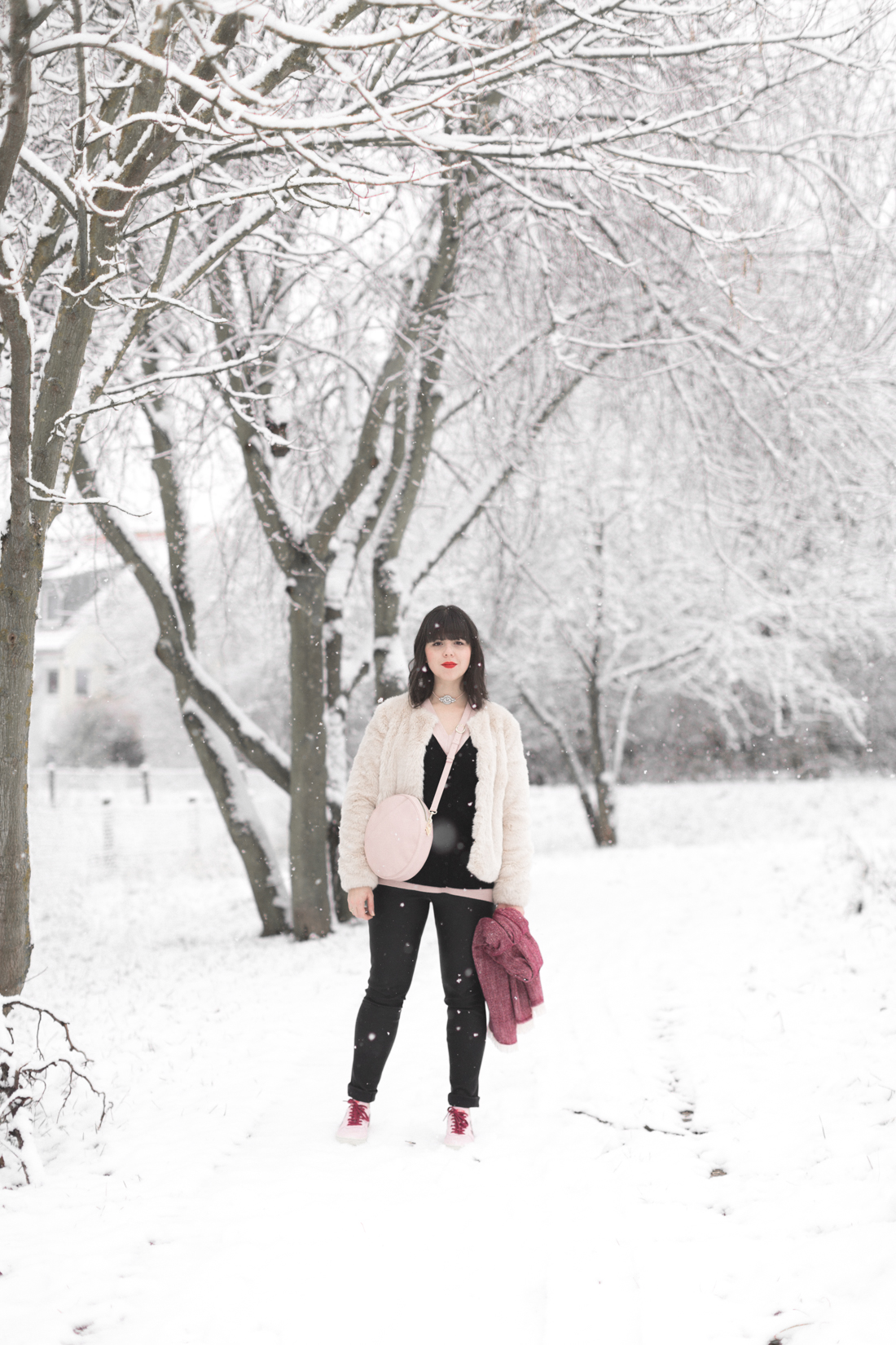 24. Mais wahouuu, cette série de photo dans la neige est juste superbe, j’adooore ! Cet #ootd est vraiment magnifique, je suis fan de ta fourrure, de tes sneakers et gros coup de coeur pour ton ras-cou !! Le meilleur pour la fin, ton sublime sac Louvreuse <3. Trop d'amour pour cette marque dont j'adore l'univers et toute sa collection de maroquinerie… Ce sac Kasimir tout rond est fabuleux et c'est mon préféré de tous !!! Je craque totalement pour la version Bordeaux qui est vraiment canon…